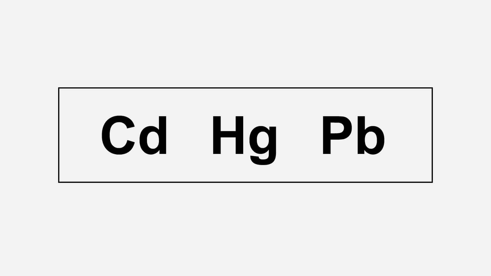 Chemické symboly (např. Pb, Cd, Hg)